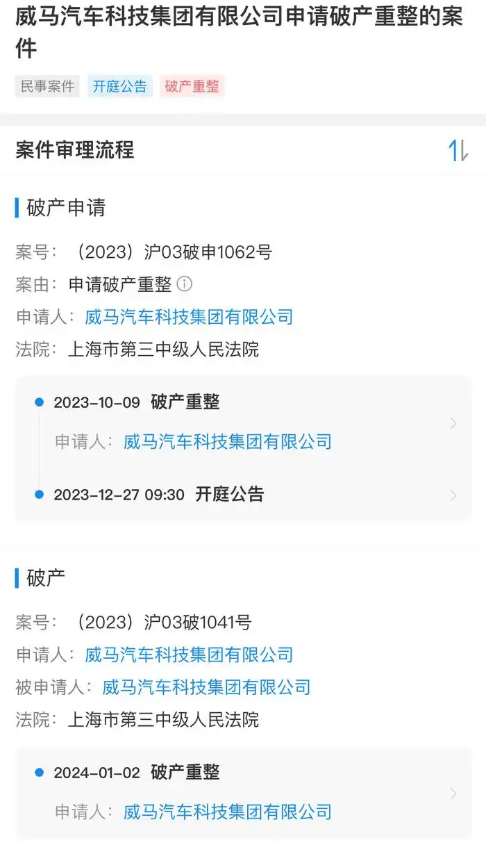 去年年初,威马汽车正式启动破产重整并公开招募战略投资人时,深圳翔飞汽车销售有限公司成为唯一有投资意愿的公司。