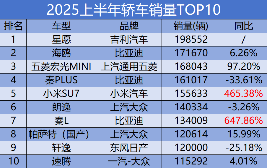2025上半年轿车市场呈现出明显的“新老交替”特征。新势力品牌凭借智能化、电动化优势迅速崛起,如小米SU7的异军突起,传统车企则通过产品升级和本土化改进应对挑战,显示出合资品牌在调整策略后的市场韧性。
