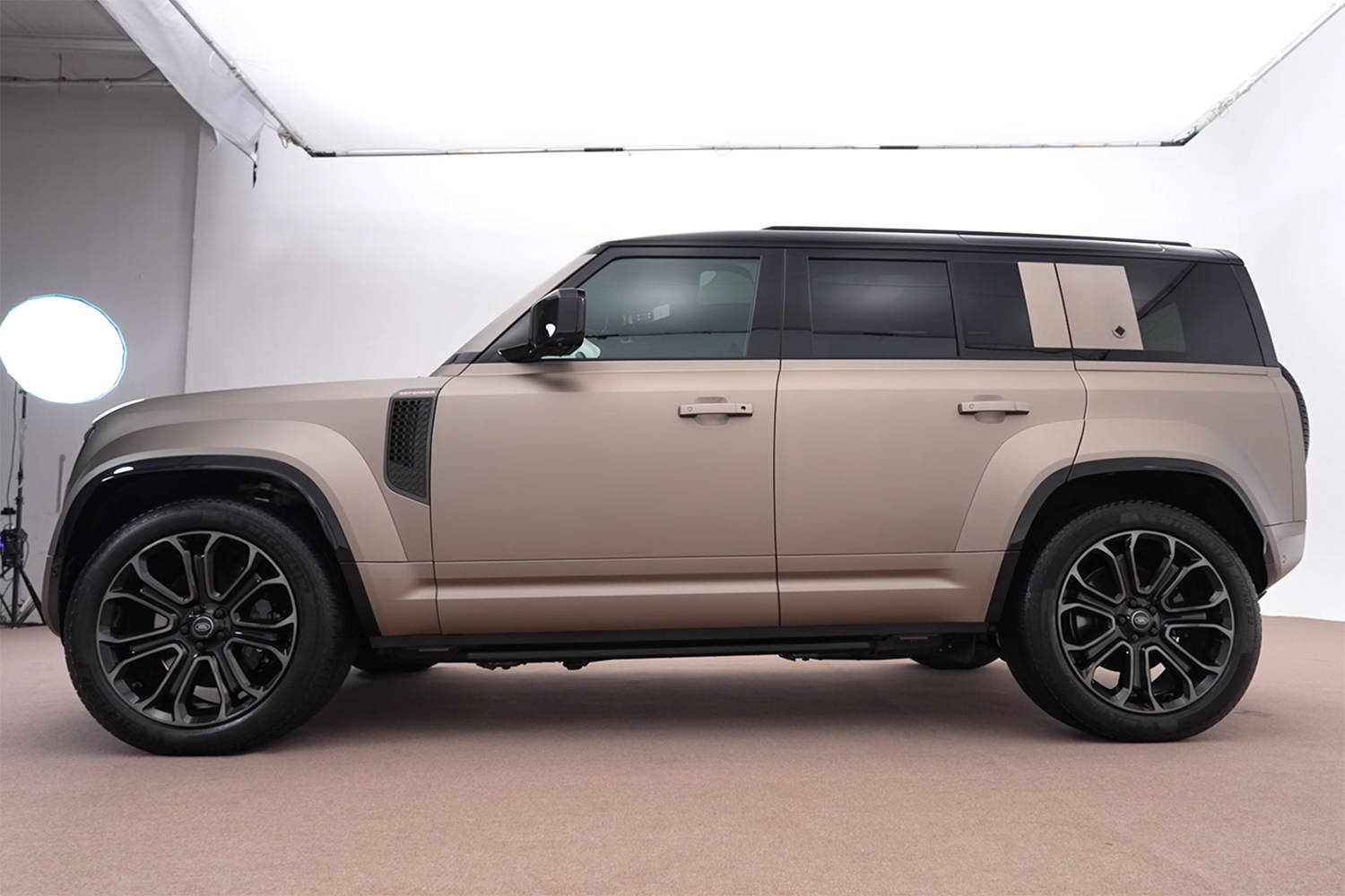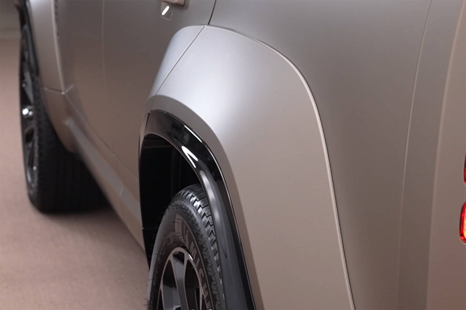 作为顶级型号,首先赋予了这辆车区别于普通版卫士的外观。最显而易见的部分,面积更大的进气格栅使空气吞吐量变大,下护板覆盖坚硬的石墨涂层并配上了哑光黑色饰面。未来,包括发动机盖通风口区域等多处装饰件都可选锻造碳纤维材质,耐高温且抗腐蚀。
