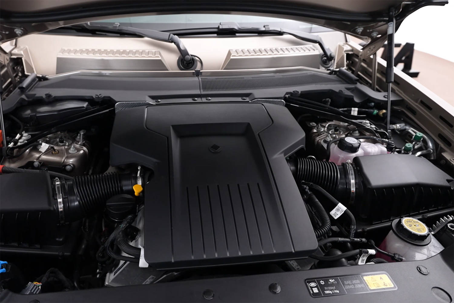 关于动力以及越野信息,它配备4.4T V8发动机,超增压模式释放800牛·米超大扭矩,让这个大家伙零百加速只需要4秒;越野关键指标,接近角40.2°,、离去角42.8°,涉水深度1000mm;双腔三阀空悬配主动悬挂,能快速修正俯仰和侧倾姿态;6D智能动态底盘非常复杂,它将液压互联阻尼器、高度可调空气弹簧和俯仰控制系统结合在一起,并且用半主动防侧倾系统取代了传统的防侧倾杆。
