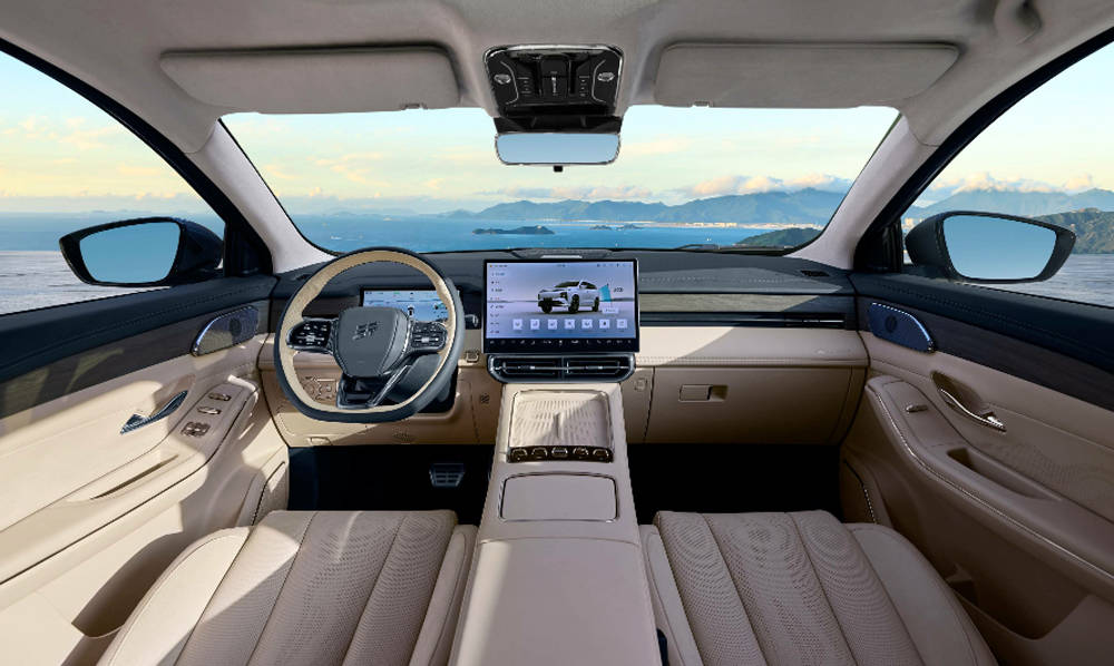 拥有4911mm车长,轴距达到2850mm的山海L9,内饰布局规整且富有时尚感,车内采用了拉丝面板加以点缀和衬托,中控台也比较干净,多功能方向盘,还算厚实的座椅,以及融合诸多功能的中控大屏等,既透着实用性也彰显出一定的科技感。