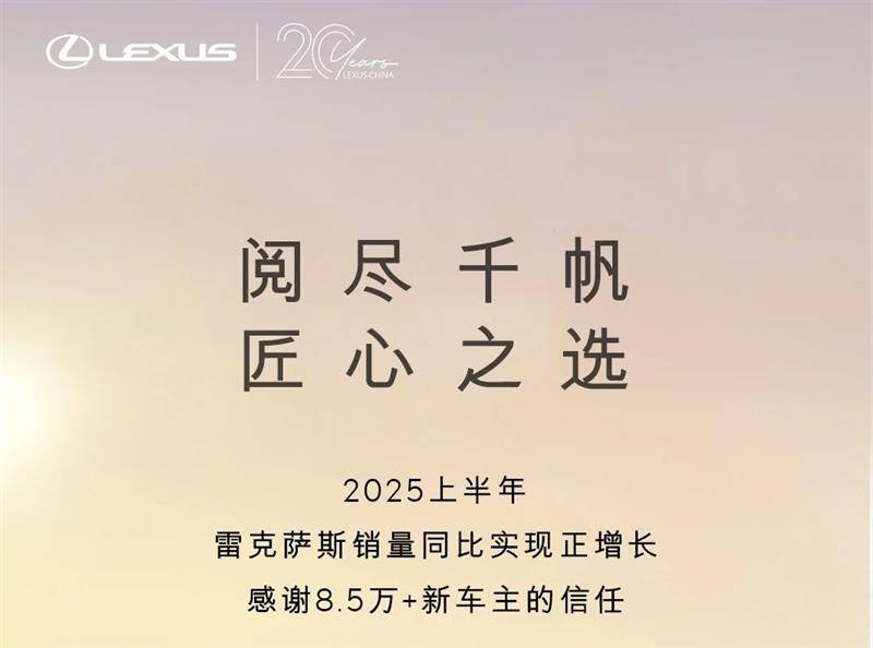 不可否定,2025年上半年雷克萨斯用出色的市场表现、坚实的产品技术实力、卓越的售后服务以及精准的本土化战略,书写了属于自己的辉煌篇章。同时让我们看到了雷克萨斯所追求的并非短期内的销量激增,而是如匠人打磨艺术品般,以稳健步伐积累实力,以此诠释“慢变量”的深层价值。