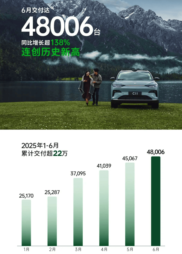 从已公布的销量数据看,零跑成最大黑马,上半年累计交付221664辆新车,同比增长达156%,首度登顶半年销量榜。再看今年6月,零跑单月的全系交付量也已经来到4.8万辆,同比增幅超过138%,创历史新高。不过,零跑的逆袭有迹可循,自2024年起,零跑便进入高速增长期,2024年实现104%的显著增长,2025年连续4个月蝉联新势力销量冠军。