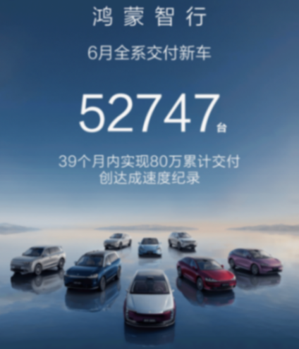 鸿蒙智行上半年累计销量同样超过20万辆,在“四大家族”的共同支撑下维持高位运行。其中6月单月全系交付52747辆,创历史新高,并成为新势力月度销量冠军。