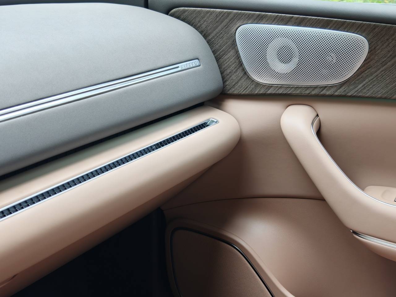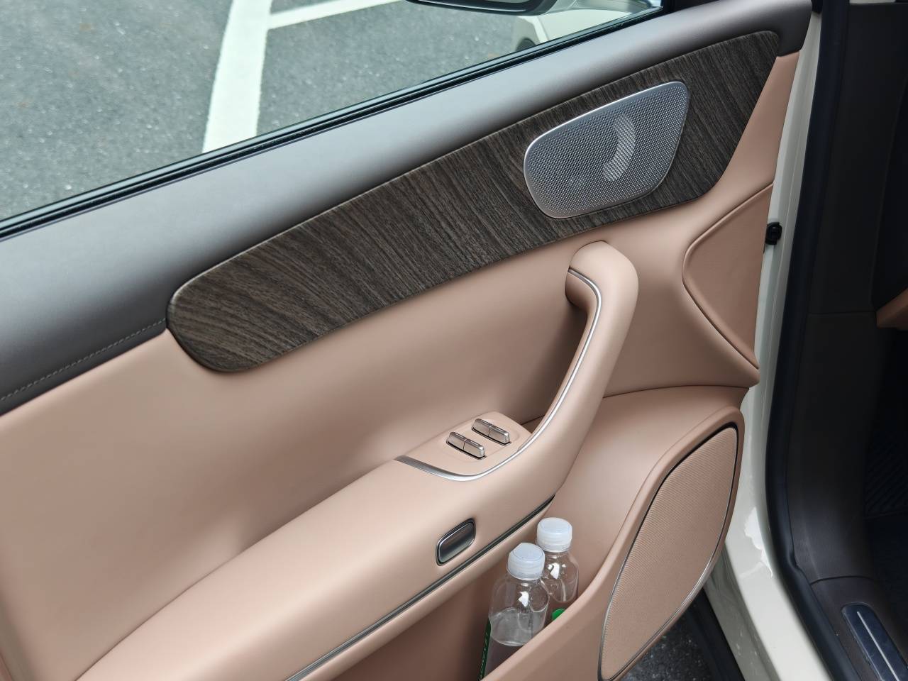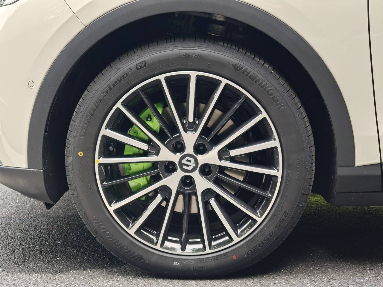 3、 新增雾凇米外观色,外形上保留了经典的无框车门、隐藏式电动门把手、溜背曲线、凌风饰条,后窗也有隐私玻璃,让人明显觉得质感更好了。20英寸轮毂为全新设计,还升级了前四活塞卡钳,做了浅绿色的性能涂装。