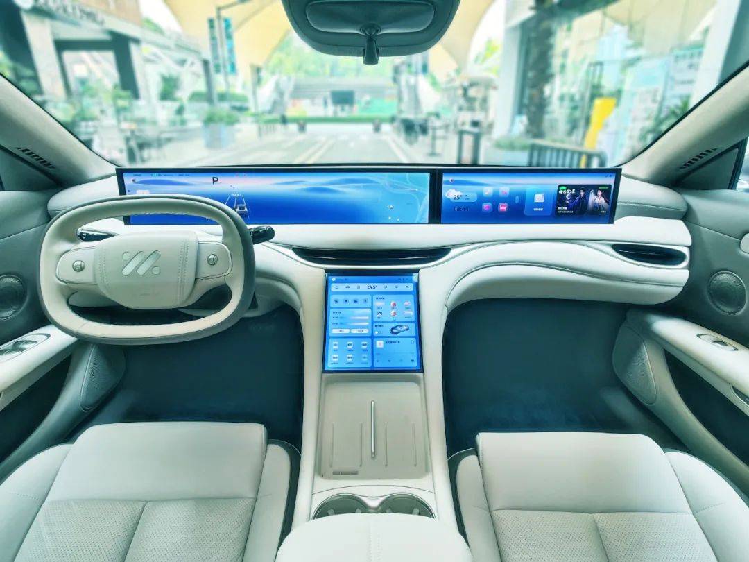 后排乘坐空间依然宽裕,不负这车2950mm的轴距长,并且由于智己L6采用掀背尾门设计,所以后备厢载物空间也足够宽裕、灵活。至于仪表台布局,则依然延续之前大屏满布的风格,除了中控台上有一竖式10.5英寸多功能主控屏之外,仪表台上靠左边还有26.3英寸讯息屏,甚至在Max+、Ultra版高端车型上还多一15.5英寸副手座专用影音娱乐屏。论科技感,智己L6真的堪称一流。
