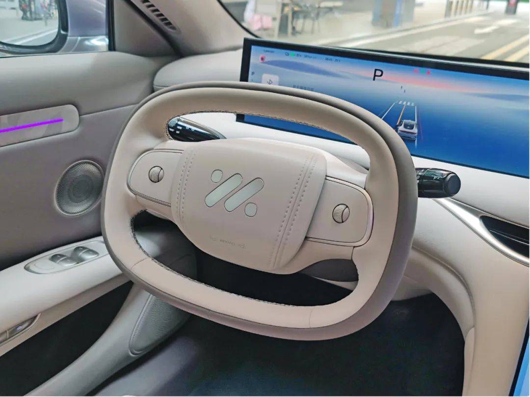 不过……之前智己L6有个让我不太欣赏的地方,此番新车虽然略有改进,但依然改得不彻底,那就是方向盘与屏幕的互动关系。之前,智己L6提供有半幅式方向盘与圆形方向盘给消费者选择,前者优点是不挡仪表屏,但缺点……大角度拐弯那是真的难用;后者优点是转动起来跟一般车辆的方向盘手感差不多,但缺点则是会挡仪表屏。于是……在2025新款智己L6上,车厂为它装上全幅式椭圆形方向盘,展现了“听劝”的诚意。