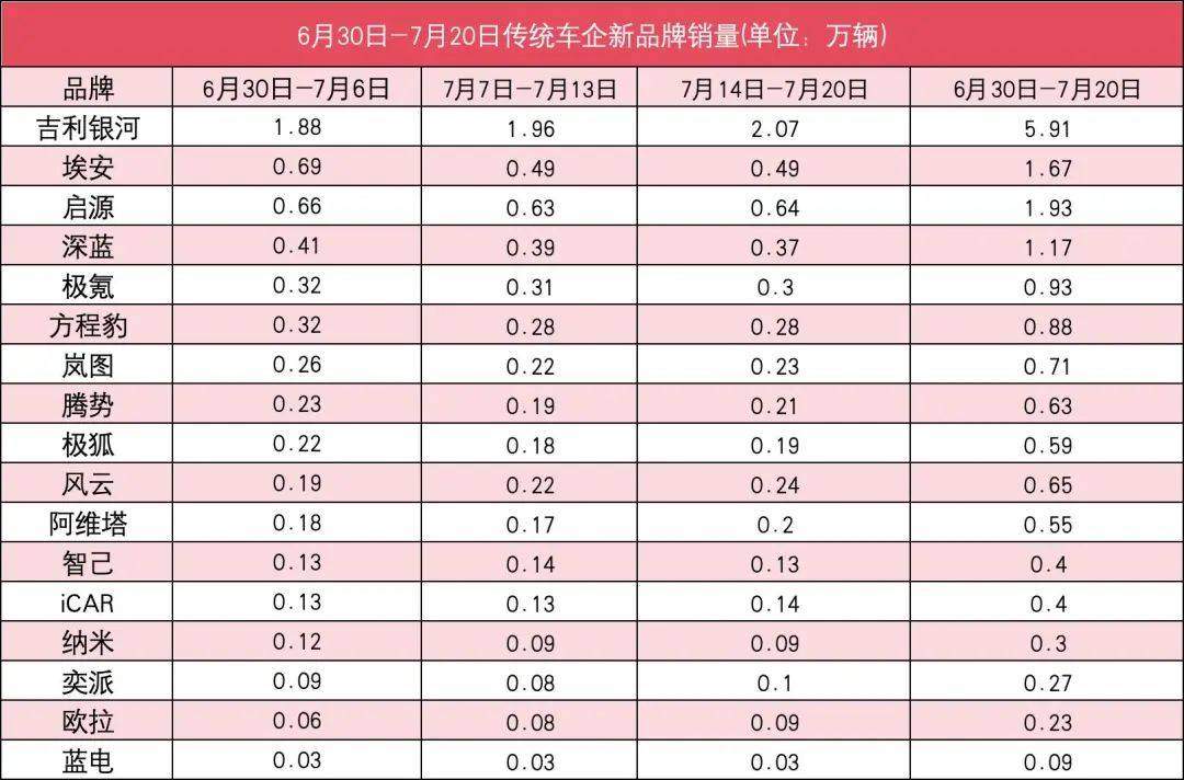 蔚来则依旧排在第六位。7月14日-7月20日,蔚来销量为0.25万辆,较前一周增长了0.01万辆。另外,乐道销量为0.17万辆,较前一周增长了0.06万辆;萤火虫为0.07万辆,较前一周增长了0.1万辆。上周,蔚来三个品牌合计销量为0.49万辆,较上一周增长了0.08万辆。