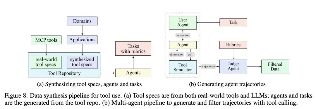 数据层面:合成+真实混合环境的十万个工具轨迹为社区提供了可复现、可扩展的智能体数据生产线;