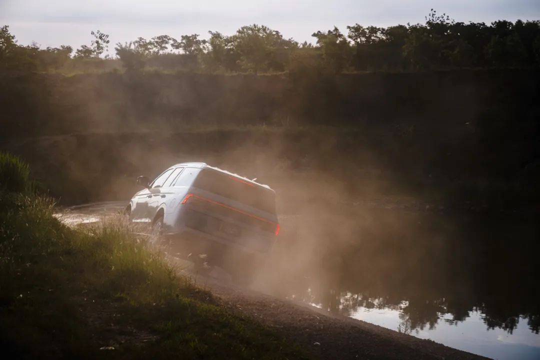 而全新一代林肯领航员,不仅有着与福特猛禽同款的非承载式车身结构,并且在“大梁式”底盘上承托起八横两纵全铝笼式车身,天生就是一款硬派越野。更重要地是,它的体内藏着一颗3.5L排量的V6大心脏,爬坡过河时踩下油门和保持油门的过程中,迸发出极具质感的低吼声,660牛·米的扭矩时刻给车身提供充足的牵引力,场地里的陡坡、炮弹坑、交叉轴等极端路况,对领航员而言,甚至还有些“轻松”。