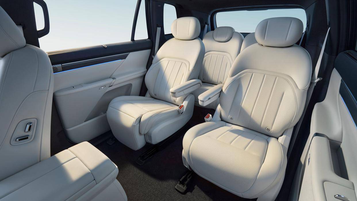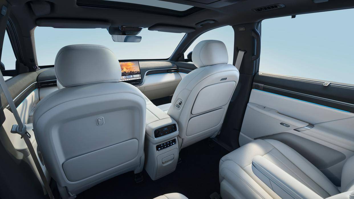 座椅也迎来了全面升级,前排标配8点按摩+通风/加热,二排零重力座椅支持10点按摩及腿托;第三排新增两组ISOFIX儿童安全座椅接口,适配多孩家庭需求。在此基础上,新车的整套座椅面料、按摩力度也有一定的优化。