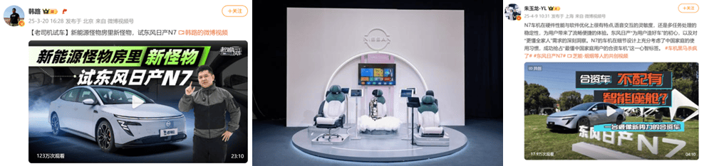 立足当前多元用户个性与复杂传播媒介环境,东风日产N7突破传统传播逻辑,以海量级素材为内容基础,展开多元化产品价值沟通。在整个上市传播周期,产品通过多方视角、丰富形式、全领域发布的手段,向不同类型消费者传递最新产品亮点。在社交媒体平台,借助短视频、图片等素材吸引用户碎片化时间,通过创意与视觉冲击引发分享互动,实现裂变式传播,扩大曝光;在专业汽车媒体,通过深度技术解析、评测等素材满足用户对产品细节的深入了解需求,提升产品价值形象。