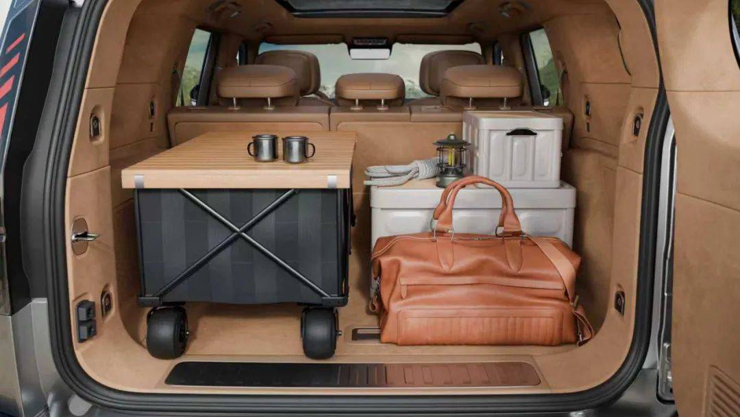 空间灵活性堪称“魔术级”。5100mm的车长+3005mm的轴距,第一排座椅靠背向后放倒可成1.7m的双人床,第二排座椅向前折叠放倒与后备厢组成2.1m的“露营大床”;常规828L后备厢容积,放倒后排后拓展至2112L,滑雪板、冲浪板等装备轻松收纳。更有低至-6℃和高至50℃智能冷暖冰箱、6kW对外放电功率,露营、长途穿越的“幸福感”直接拉满。