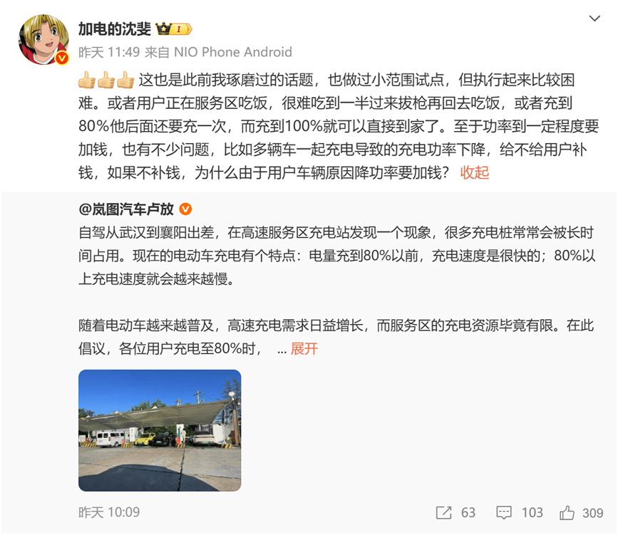 对此,蔚来高级副总裁沈斐火速回应:用户正吃饭怎忍心打断?充80%可能需二次补能,规则执行恐伤体验。